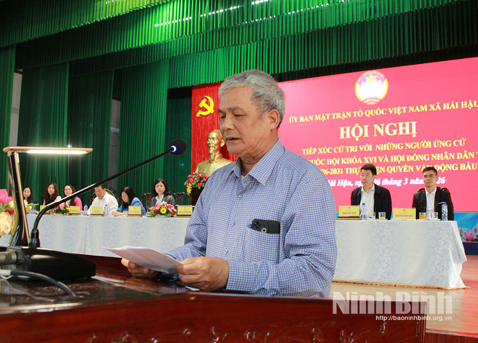 Tại hội nghị, đại diện Ủy ban MTTQ Việt Nam xã Hải Hậu đã giới thiệu tóm tắt tiểu sử, quá trình công tác của các ứng cử viên; các ứng cử viên trình bày chương trình hành động nếu được cử tri tín nhiệm bầu làm đại biểu HĐND tỉnh khóa XVI, nhiệm kỳ 2026-2031.
