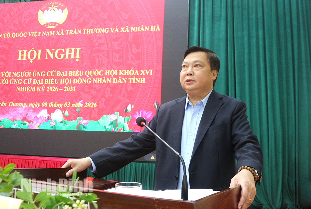 * Chiều ngày 8/3, Ban Thường trực Uỷ ban MTTQ Việt Nam xã Trần Thương phối hợp với Ban Thường trực Uỷ ban MTTQ Việt Nam xã Nhân Hà tổ chức Hội nghị tiếp xúc giữa cử tri với những người ứng cử ĐBQH khóa XVI, Đơn vị bầu cử số 2 và người ứng cử đại biểu HĐND tỉnh, nhiệm kỳ 2026-2031, Đơn vị bầu cử số 4.
