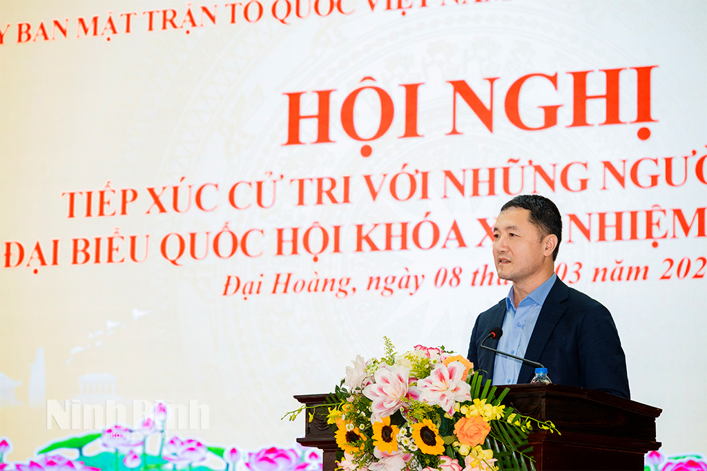 Đồng chí Phạm Hùng Thắng, Tỉnh ủy viên, Phó trưởng Đoàn chuyên trách Đoàn ĐBQH tỉnh đại diện cho người ứng cử ĐBQH và đại biểu HĐND tỉnh trân trọng cảm ơn cử tri đã quan tâm lắng nghe, góp ý chương trình hành động và tiếp thu ý kiến của cử tri. Đồng thời hứa không ngừng nỗ lực, đem hết tâm sức, trí tuệ của mình để thực hiện tốt chức năng, nhiệm vụ người đại biểu nhân dân và chương trình hành động đã đề ra, góp phần xây dựng quê hương Ninh Bình ngày càng phát triển.