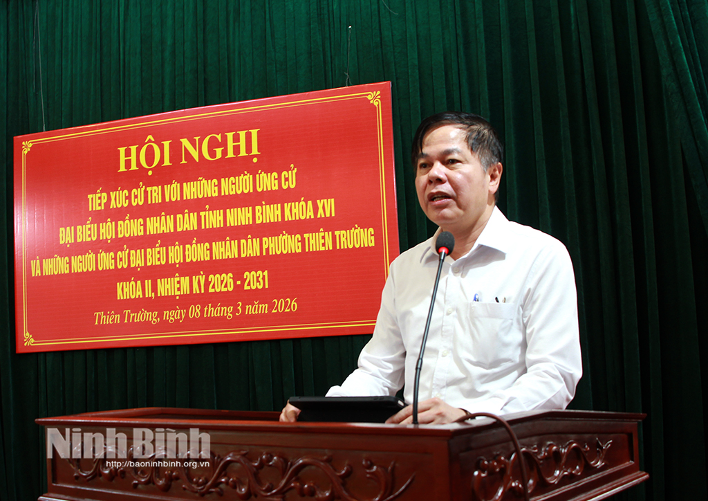 * Chiều 8/3, Ban Thường trực Ủy ban MTTQ Việt Nam phường Thiên Trường tổ chức hội nghị tiếp xúc cử tri để những người ứng cử đại biểu HĐND tỉnh nhiệm kỳ 2026-2031 tại Đơn vị bầu cử số 15 thực hiện quyền vận động bầu cử.