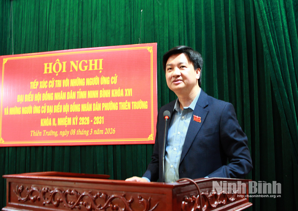 Thay mặt những người ứng cử đại biểu HĐND tỉnh nhiệm kỳ 2026 - 2031 tại Đơn vị bầu cử số 15, đồng chí Trần Minh Thắng, Ủy viên Ban Thường vụ Tỉnh ủy, Bí thư Đảng uỷ, Chủ tịch HĐND phường Nam Định trân trọng cảm ơn sự quan tâm, tin tưởng và những ý kiến tâm huyết, trách nhiệm của cử tri phường Thiên Trường. Đồng chí khẳng định, các ứng cử viên sẽ nghiêm túc tiếp thu đầy đủ ý kiến, kiến nghị của cử tri để nghiên cứu, bổ sung, hoàn thiện Chương trình hành động. Đồng thời cam kết, nếu được cử tri tín nhiệm bầu làm đại biểu HĐND tỉnh, sẽ luôn giữ vững phẩm chất, đạo đức, phát huy tinh thần trách nhiệm, dành nhiều thời gian gần gũi, lắng nghe ý kiến, kiến nghị của cử tri và phản ánh kịp thời, trung thực đến HĐND tỉnh và các cơ quan có thẩm quyền xem xét, giải quyết, đáp ứng yêu cầu, nguyện vọng chính đáng của Nhân dân, góp phần xây dựng quê hương ngày càng giàu đẹp, văn minh.