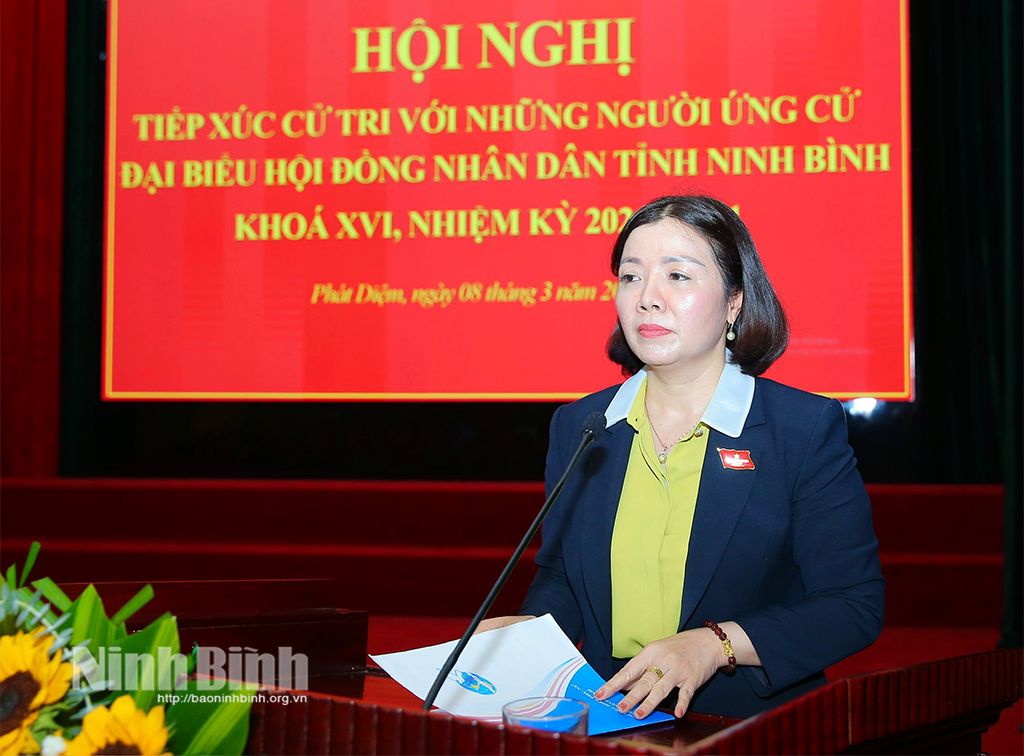 Thay mặt các ứng cử viên ĐBQH, HĐND tỉnh, đồng chí Nguyễn Hoàng Hà, Ủy viên Ban Thường vụ Tỉnh ủy, Phó Chủ tịch Thường trực Ủy ban MTTQ tỉnh trân trọng tiếp thu và cảm ơn các ý kiến tâm huyết, trách nhiệm của cử tri. Đồng thời cam kết nếu trúng cử sẽ thực hiện nghiêm túc Chương trình hành động đã trình bày; nỗ lực thực hiện tốt vai trò, trách nhiệm của người đại biểu nhân dân; giữ mối liên hệ chặt chẽ, thường xuyên với cử tri để lắng nghe tâm tư, nguyện vọng chính đáng, phản ánh đầy đủ với Quốc hội, HĐND tỉnh, các cơ quan có liên quan, đồng thời thường xuyên nắm bắt tình hình thực tiễn, lắng nghe ý kiến từ cơ sở, làm tốt vai trò “cầu nối” giữa cử tri, nhân dân với các cơ quan của tỉnh, các địa phương, góp phần thiết thực xây dựng tỉnh Ninh Bình ngày càng giàu đẹp, văn minh, đời sống vật chất, tinh thần của nhân dân ngày càng được nâng cao.