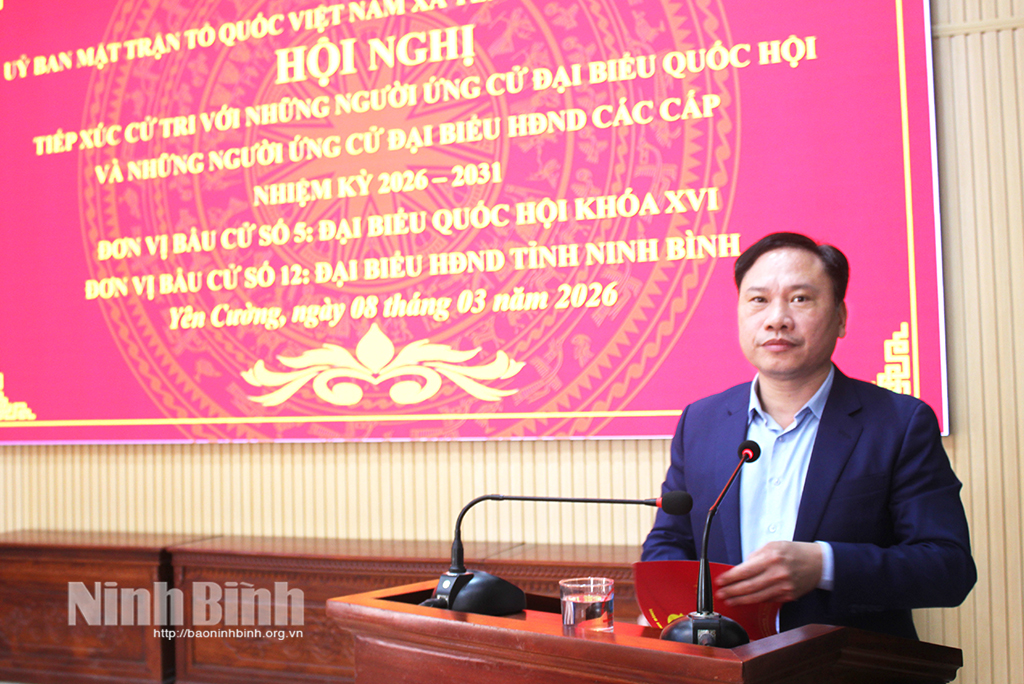 * Chiều 8/3, Ban Thường trực Ủy ban MTTQ Việt Nam xã Yên Cường phối hợp với UBND xã và Ủy ban Bầu cử xã tổ chức hội nghị tiếp xúc giữa cử tri với những người ứng cử BĐQH khóa XVI tại Đơn vị bầu cử số 5 và những người ứng cử đại biểu HĐND tỉnh khóa XVI, nhiệm kỳ 2026-2031 tại Đơn vị bầu cử số 12.