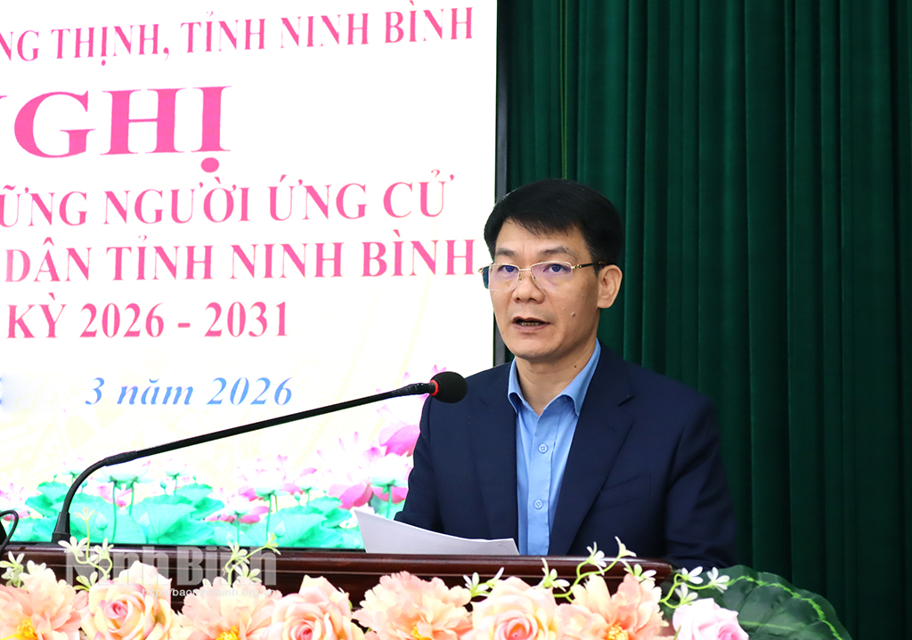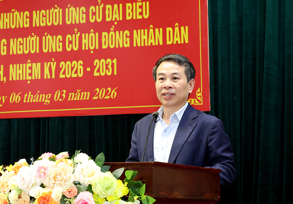 Hội nghị giới thiệu tiểu sử 5 người ứng cử đại biểu HĐND tỉnh khóa XVI, nhiệm kỳ 2026-2031 tại Đơn vị bầu cử số 6, gồm các ông, bà: Trần Song Tùng, Ủy viên Ban Thường vụ Tỉnh ủy, Phó Chủ tịch Thường trực UBND tỉnh; Phạm Thị Phương Hạnh, Tỉnh ủy viên, Giám đốc Sở Y tế; Vũ Thị Dược, Bí thư Đảng ủy, Chủ tịch HĐND xã Gia Trấn; Đinh Thị Ngọc Anh, chuyên viên Văn phòng, Sở Tài chính; Mai Thị Hồng Ánh, chuyên viên, Phòng Quản lý Y tế Dự phòng, Sở Y tế.