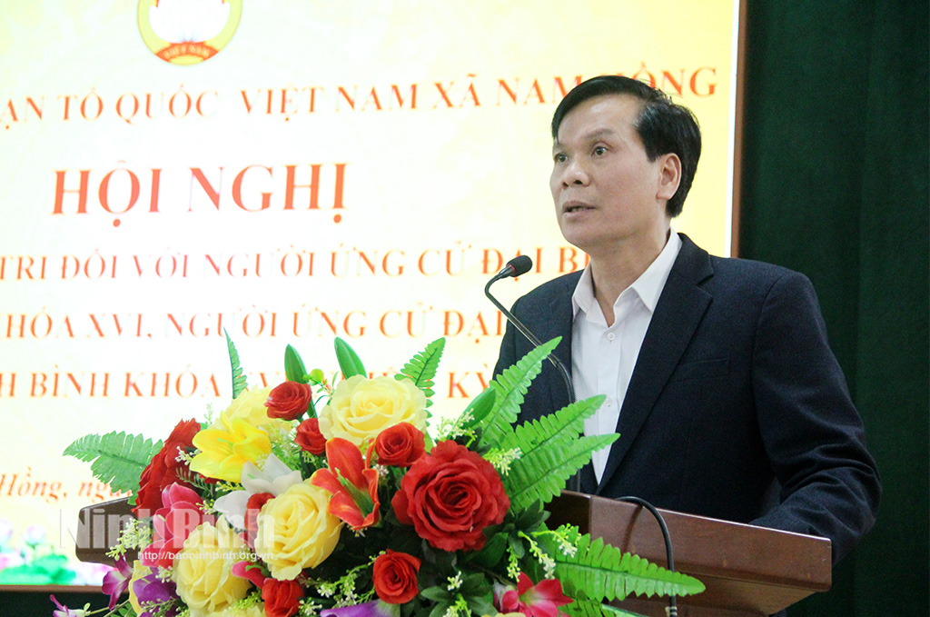 Hội nghị đã nghe đại diện Ủy ban MTTQ Việt Nam xã Nam Hồng giới thiệu tóm tắt tiểu sử, quá trình công tác của các ứng cử viên; nghe các ứng cử viên trình bày chương trình hành động. Theo đó, các chương trình hành động đưa ra một số giải pháp về việc kịp thời phản ánh, đề xuất giải quyết những vấn đề liên quan đến phát triển kinh tế - xã hội của địa phương, tập trung vào đẩy mạnh khoa học - công nghệ, thúc đẩy chuyển đổi số; quan tâm phát triển giáo dục, du lịch; chú trọng công tác bảo đảm an sinh xã hội; giữ vững quốc phòng - an ninh, bảo đảm trật tự an toàn xã hội trên địa bàn.