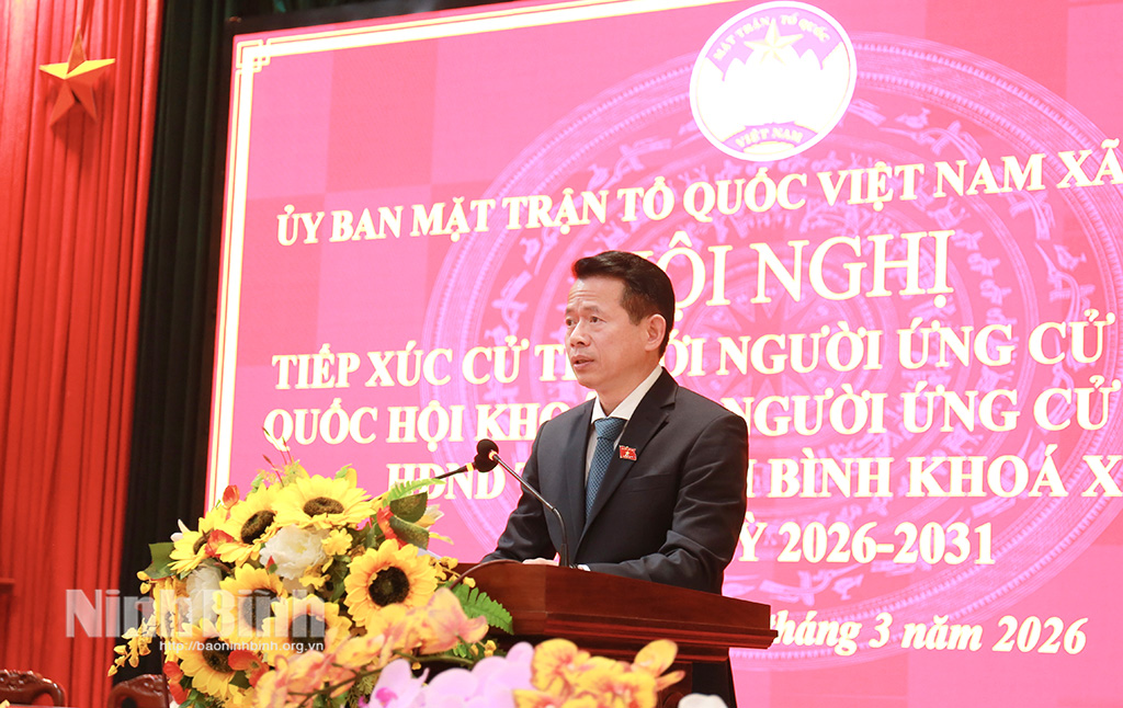 Thay mặt các ứng cử viên, đồng chí Nguyễn Hải Dũng, Tỉnh ủy viên, Phó Trưởng Đoàn chuyên trách Đoàn đại biểu Quốc hội tỉnh Ninh Bình khóa XV đã tiếp thu, tổng hợp ý kiến cử tri để hoàn thiện chương trình hành động góp phần nâng cao chất lượng hoạt động của cơ quan dân cử, đảm bảo tiếng nói và nguyện vọng chính đáng của Nhân dân được phản ánh đầy đủ, kịp thời tới các cơ quan có thẩm quyền, góp phần xây dựng tỉnh Ninh Bình ngày càng phát triển.