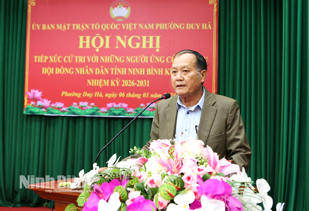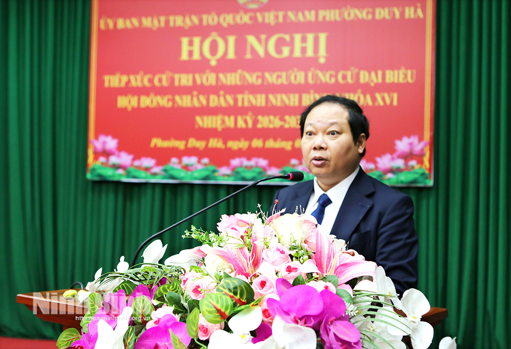 Tại hội nghị, đại diện Ủy ban MTTQ Việt Nam phường Duy Hà đã thông tin tiểu sử tóm tắt của các ứng cử viên. Tiếp đó, các ứng cử viên đã trình bày chương trình hành động nếu được bầu làm đại biểu HĐND tỉnh Ninh Bình khóa XVI, nhiệm kỳ 2026-2031. Trong đó khẳng định: Với cương vị công tác của mình, nếu được bầu làm đại biểu HĐND tỉnh nhiệm kỳ 2026-2031, các ứng cử viên sẽ tích cực tham gia đóng góp ý kiến với HĐND tỉnh để có những quyết định đúng đắn và chương trình hành động thiết thực, cụ thể nhằm đưa các chủ trương, đường lối, chỉ thị, nghị quyết của Đảng vào cuộc sống; thực hiện thắng lợi các mục tiêu phát triển kinh tế - xã hội mà Nghị quyết Đại hội Đảng bộ tỉnh Ninh Bình lần thứ I, nhiệm kỳ 2025-2030 đã đề ra, xây dựng tỉnh ngày càng phát triển, trở thành thành phố trực thuộc Trung ương vào năm 2030. Tập trung nghiên cứu, tích cực thảo luận, tham gia đóng góp ý kiến đối với các nghị quyết, chương trình hành động của HĐND tỉnh và các chính sách phát triển kinh tế - xã hội, nhất là các chính sách liên quan đến kinh tế, đất đai, môi trường, đầu tư và an sinh xã hội. Tích cực tham gia các hoạt động giám sát của HĐND tỉnh. Tích cực tham gia đóng góp ý kiến để HĐND tỉnh đưa ra những giải pháp tích cực trên các lĩnh vực mà cử tri và Nhân dân quan tâm như: Vấn đề quy hoạch và phát triển đô thị, tập trung phát triển công nghiệp, tăng cường thu hút đầu tư, giải quyết việc làm tăng thu nhập cho Nhân dân; đẩy mạnh phát triển sản xuất, nâng cao đời sống nhân dân. Thường xuyên giữ mối liên hệ chặt chẽ với Nhân dân, lắng nghe, tiếp thu ý kiến và nắm bắt tâm tư, nguyện vọng của cử tri và Nhân dân để chuyển đến các cơ quan có thẩm quyền xem xét giải quyết và trả lời...