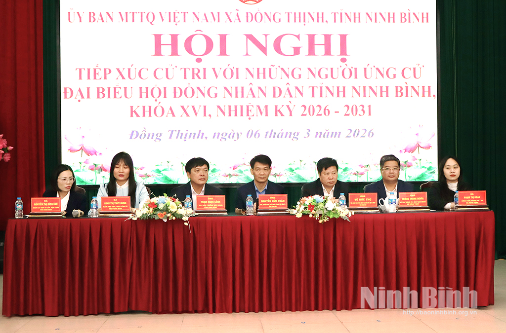 * Sáng 6/3, Ban Thường trực Ủy ban MTTQ Việt Nam xã Đồng Thịnh tổ chức hội nghị tiếp xúc giữa cử tri với những người ứng cử đại biểu HĐND tỉnh khóa XVI, nhiệm kỳ 2026-2031 tại Đơn vị bầu cử số 17.