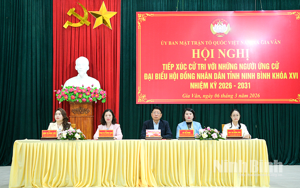 * Sáng 6/3, các ứng cử viên đại biểu HĐND tỉnh khóa XVI, nhiệm kỳ 2026-2031 thuộc Đơn vị bầu cử số 6 đã có buổi tiếp xúc với cử tri xã Gia Vân để thực hiện quyền vận động bầu cử theo luật định. Hội nghị được truyền trực tuyến đến các điểm cầu các xã Gia Hưng và xã Gia Viễn để đông đảo cử tri tham dự.