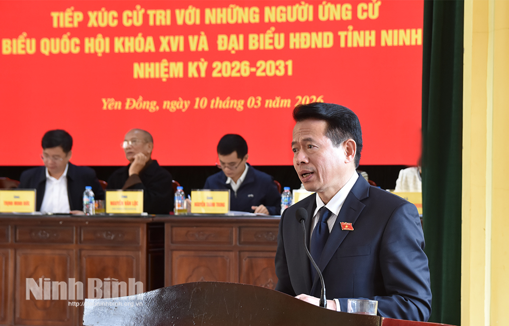 Tại hội nghị, thay mặt các ứng cử viên, đồng chí Nguyễn Hải Dũng, Tỉnh ủy viên, Phó Trưởng đoàn Đoàn đại biểu Quốc hội tỉnh Ninh Bình đã phát biểu cảm ơn, trân trọng tiếp thu các ý kiến đóng góp tâm huyết của cử tri. Đồng thời khẳng định nếu được cử tri tín nhiệm bầu chọn làm đại biểu Quốc hội, đại biểu HĐND tỉnh, các ứng cử viên sẽ thực hiện đúng cam kết với cử tri, nỗ lực thực hiện tốt chức trách, nhiệm vụ được giao để xứng đáng với sự kỳ vọng của cử tri và nhân dân.