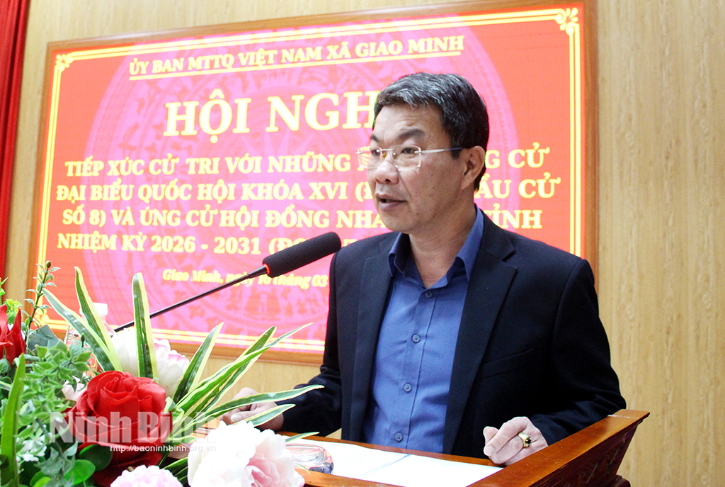 Tại hội nghị, đại diện Ủy ban MTTQ Việt Nam xã Giao Minh đã thông tin tiểu sử tóm tắt, quá trình công tác của các ứng cử viên đại biểu Quốc hội khoá XVI và đại biểu HĐND tỉnh nhiệm kỳ 2026-2031.