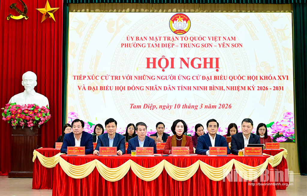 * Sáng 10/3, Ban Thường trực Uỷ ban MTTQ Việt Nam các phường: Tam Điệp, Trung Sơn và Yên Sơn phối hợp tổ chức hội nghị tiếp xúc giữa cử tri với những người ứng cử đại biểu Quốc hội (ĐBQH) khóa XVI và đại biểu HĐND tỉnh nhiệm kỳ 2026-2031.