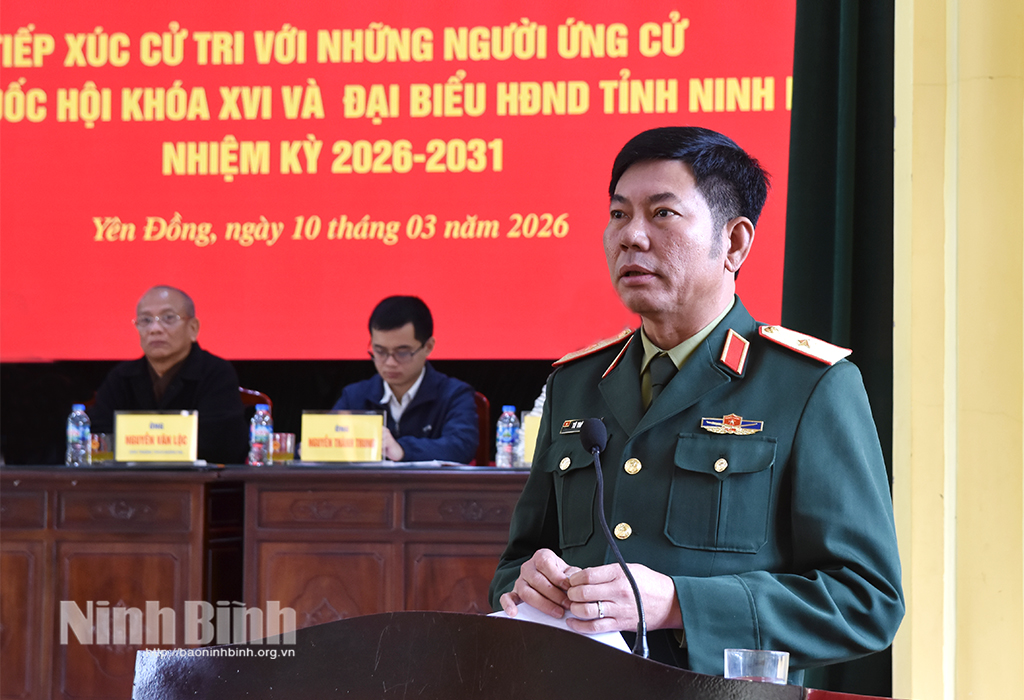 * Sáng 10/3, Ban Thường trực Ủy ban MTTQ Việt Nam xã Yên Đồng phối hợp tổ chức hội nghị tiếp xúc giữa cử tri với những người ứng cử đại biểu Quốc hội khóa XVI (Đơn vị bầu cử số 5), ứng cử đại biểu HĐND tỉnh Ninh Bình khóa XVI, nhiệm kỳ 2026-2031 (Đơn vị bầu cử số 12).