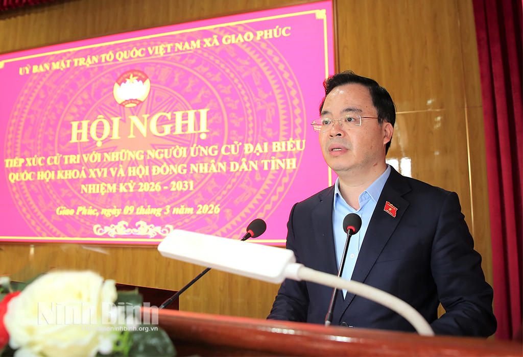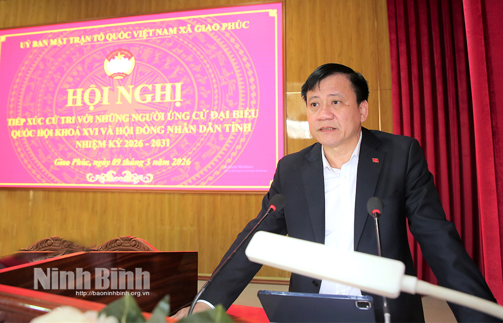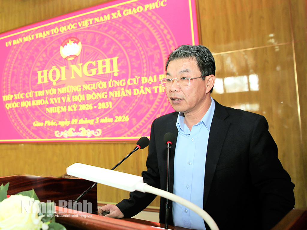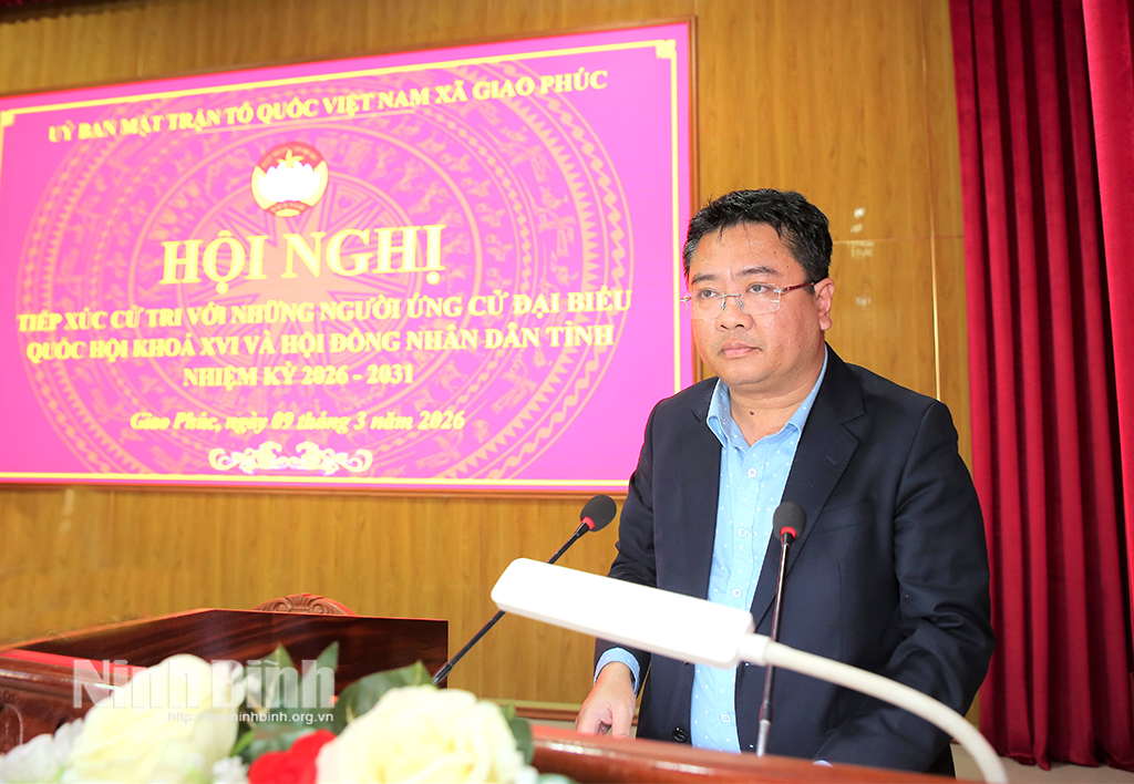 Tại hội nghị, đại diện cử tri xã Giao Phúc bày tỏ sự tin tưởng và kỳ vọng những người ứng cử đại biểu Quốc hội khóa XVI và đại biểu HĐND tỉnh nhiệm kỳ 2026 -2031 sẽ là những đại biểu tiêu biểu về phẩm chất, đạo đức, có bản lĩnh chính trị vững vàng, trình độ, năng lực và tinh thần trách nhiệm cao trước Đảng, Nhà nước và Nhân dân.