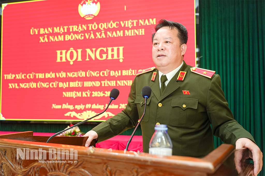 Thay mặt những người ứng cử, đồng chí Nguyễn Hải Dũng, Tỉnh ủy viên, Phó trưởng Đoàn chuyên trách Đoàn đại biểu Quốc hội tỉnh Ninh Bình trân trọng tiếp thu và cảm ơn các ý kiến xây dựng tâm huyết của cử tri. Đồng thời, cam kết nếu trúng cử sẽ thực hiện nghiêm túc Chương trình hành động đã trình bày. Thường xuyên nắm bắt tình hình thực tiễn, giữ mối quan hệ gắn bó, mật thiết với nhân dân.