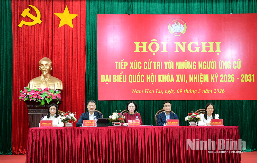 * Sáng 9/3, Ban Thường trực Ủy ban MTTQ Việt Nam phường Nam Hoa Lư phối hợp tổ chức hội nghị tiếp xúc cử tri với những người ứng cử đại biểu Quốc hội khóa XVI tại Đơn vị bầu cử số 3.