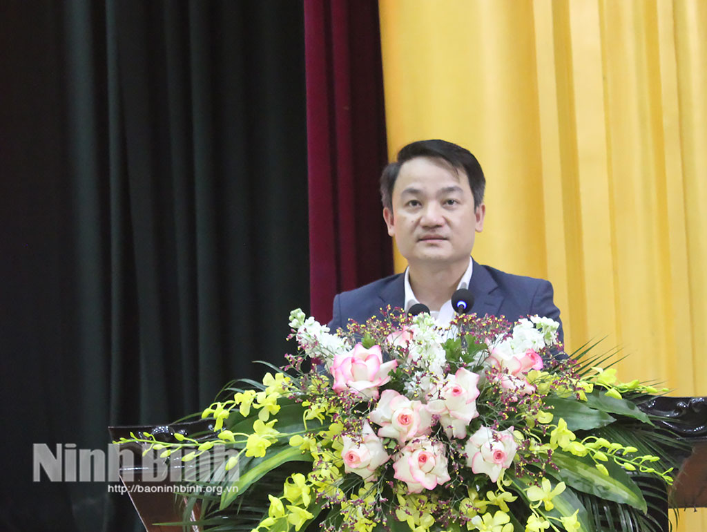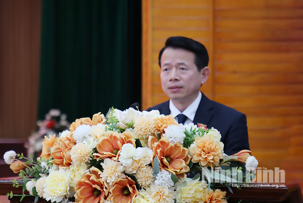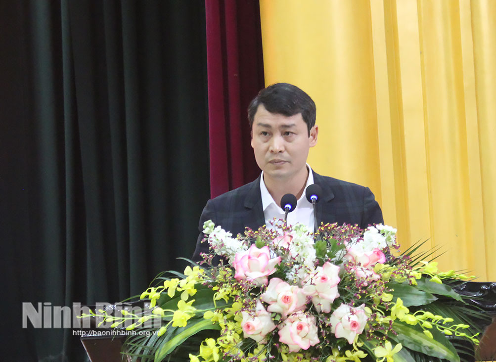 Đồng chí Nguyễn Hải Dũng, Tỉnh ủy viên, Phó trưởng Đoàn đại biểu Quốc hội tỉnh Ninh Bình trình bày chương trình hành động.