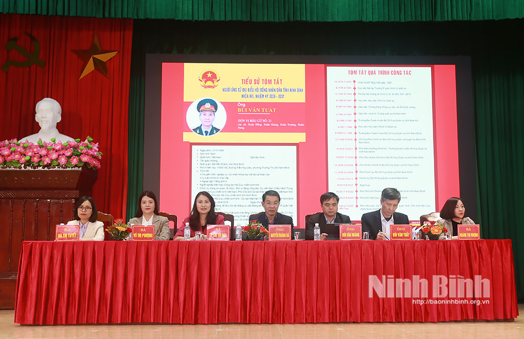 Các ứng cử viên ĐBQH khóa XVI đã trình bày chương trình hành động, thể hiện quyết tâm và tinh thần trách nhiệm trước cử tri. Trong đó, nhấn mạnh, nếu được cử tri tín nhiệm bầu làm ĐBQH khóa XVI, các đại biểu sẽ tập trung thúc đẩy phát triển kinh tế - xã hội, nâng cao chất lượng giáo dục, y tế, chăm lo an sinh xã hội, bảo tồn và phát huy các giá trị văn hóa truyền thống, xây dựng hệ thống chính quyền hoạt động hiệu lực, hiệu quả và đảm bảo an ninh quốc phòng…; quan tâm đến việc xây dựng tỉnh Ninh Bình trở thành thành phố trực thuộc Trung ương; là điểm đến của du lịch quốc gia và quốc tế. Đồng thời, cam kết thường xuyên giữ mối liên hệ chặt chẽ với nhân dân, lắng nghe ý kiến, kiến nghị từ cơ sở để phản ánh kịp thời đến Quốc hội và HĐND tỉnh; tích cực tham gia xây dựng, hoàn thiện chính sách, pháp luật; giám sát việc thực hiện các chủ trương, nghị quyết liên quan trực tiếp đến đời sống nhân dân.