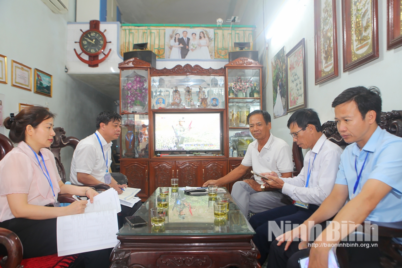 Cán bộ Thống kê tỉnh giám sát thu thập thông tin về nông nghiệp, nông thôn tại hộ gia đình ở tổ dân phố Trung, phường Thành Nam.