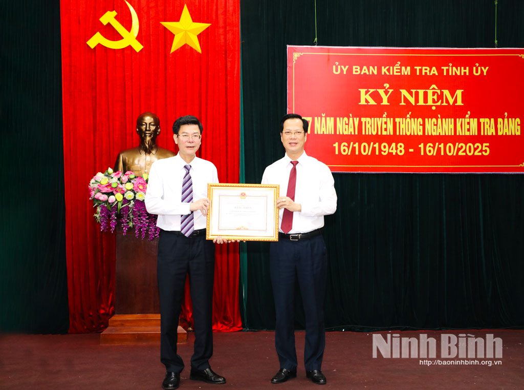 Cùng với quá trình xây dựng và trưởng thành của ngành Kiểm tra Đảng cả nước, ngành Kiểm tra Đảng tỉnh Ninh Bình cũng được hình thành và không ngừng phát triển. Ủy ban Kiểm tra các cấp trong tỉnh luôn cố gắng, nỗ lực, vừa làm tốt công tác tham mưu với cấp ủy, vừa tập trung triển khai có hiệu quả công tác kiểm tra, giám sát theo Điều lệ Đảng; gắn kiểm tra với giám sát, góp phần phòng ngừa, ngăn chặn sự suy thoái về tư tưởng chính trị, đạo đức, lối sống, thực hiện thắng lợi nhiệm vụ chính trị và công tác xây dựng Đảng của Đảng bộ tỉnh.