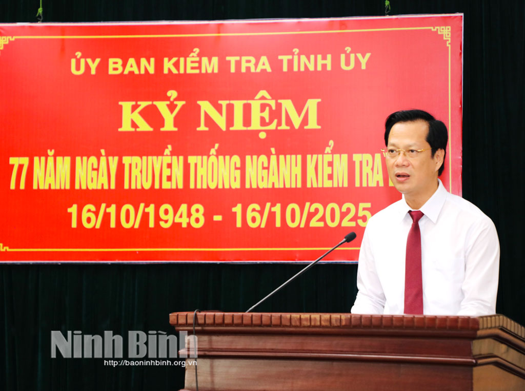 Tại buổi gặp mặt, đồng chí Nguyễn Anh Tuấn, Ủy viên Ban Thường vụ Tỉnh ủy, Chủ nhiệm Uỷ ban Kiểm tra Tỉnh ủy đã trình bày diễn văn ôn lại truyền thống vẻ vang 77 năm xây dựng và trưởng thành của ngành Kiểm tra Đảng. Trong đó nêu rõ: Trước yêu cầu nhiệm vụ chính trị, sự lớn mạnh của tổ chức Đảng và yêu cầu ngày càng cao đối với công tác xây dựng Đảng, ngày 16/10/1948, tại chiến khu Việt Bắc, Ban Thường vụ Trung ương Đảng khóa I quyết định thành lập Ban Kiểm tra Trung ương - cơ quan kiểm tra chuyên trách đầu tiên của Đảng.