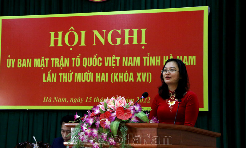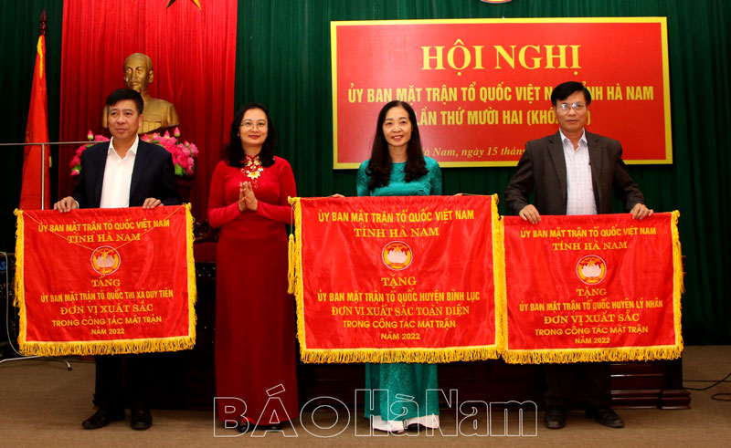Đồng chí Trần Thị Ngân, Ủy viên BTV Tỉnh ủy, Chủ tịch Ủy ban MTTQ tỉnh trao Cờ thi đua cho các đơn vị xuất sắc toàn diện trong công tác mặt trận năm 2022.Các tập thể tiêu biểu được nhận Bằng khen của Chủ tịch Ủy ban MTTQ tỉnh.Các cá nhân có nhiều thành tích xuất sắc được nhận Bằng khen của Chủ tịch Ủy ban MTTQ tỉnh.
