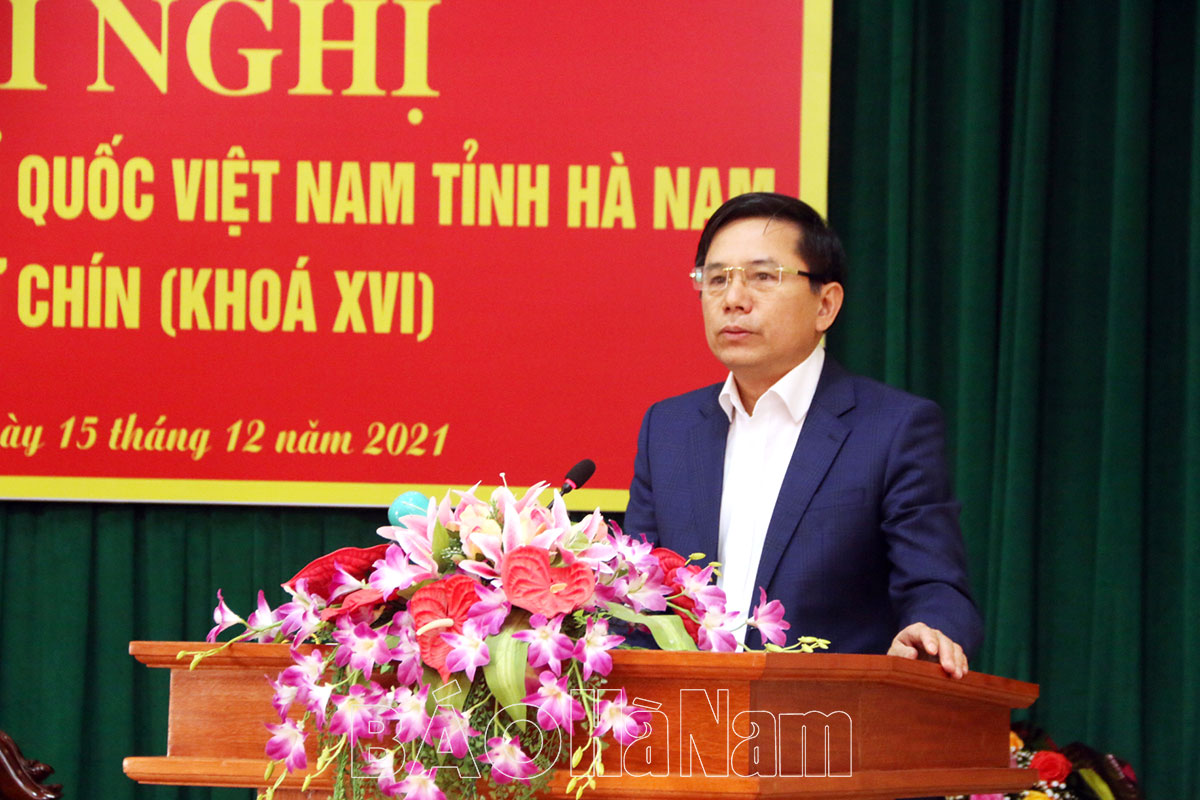 Chiều 15/12, Ban Thường trực Ủy ban MTTQ tỉnh tổ chức hội nghị Ủy ban MTTQ tỉnh lần thứ Chín (khóa XVI) tổng kết công tác mặt trận năm 2021, triển khai công tác mặt trận năm 2022.