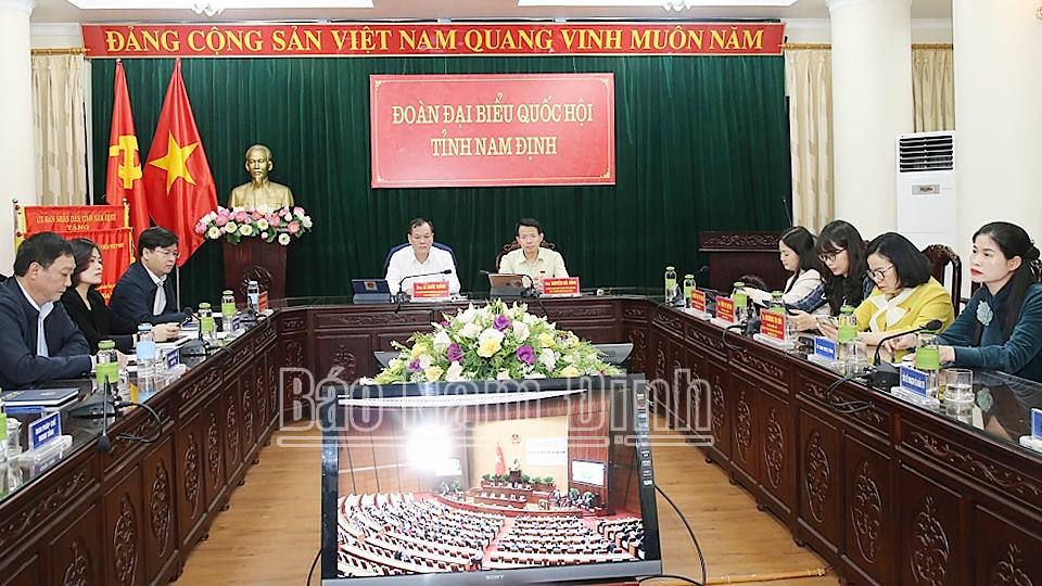 | Các đồng chí: Lê Quốc Chỉnh, Phó Bí thư Thường trực Tỉnh ủy, Chủ tịch HĐND tỉnh, Trưởng đoàn Đoàn đại biểu Quốc hội tỉnh; Nguyễn Hải Dũng, TUV, Phó Trưởng đoàn chuyên trách Đoàn đại biểu Quốc hội tỉnh chủ trì tại điểm cầu tỉnh Nam Định. |