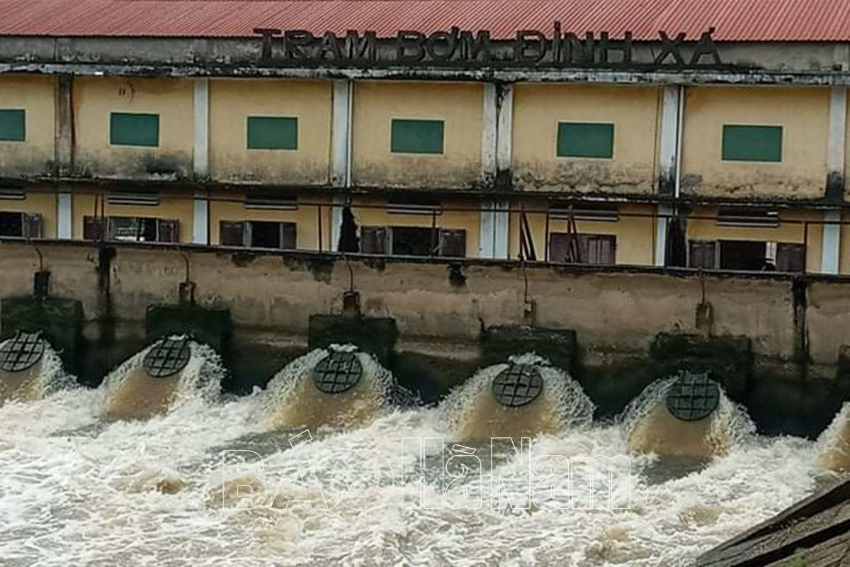 Trạm bơm Đinh Xá - Công ty KTCTTL Hà Nam hoạt động tiêu nước (Ảnh do trạm bơm cung cấp)