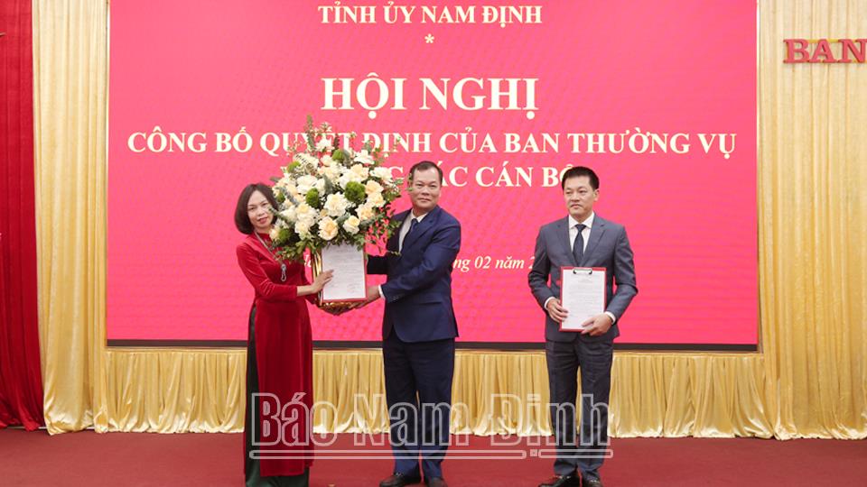 Tại hội nghị, lãnh đạo Ban Tổ chức Tỉnh ủy đã công bố Quyết định số 998-QĐ/TU của Ban TVTU về việc bổ nhiệm đồng chí Khúc Thành Trung, Trưởng phòng Tài chính Đảng, Văn phòng Tỉnh ủy giữ chức vụ Phó Chánh Văn phòng Tỉnh ủy; thời hạn bổ nhiệm là 5 năm; công bố Quyết định số 996-QĐ/TU của Ban TVTU về việc bổ nhiệm đồng chí Nguyễn Thị Thanh Xuân, Trưởng phòng Tổng hợp, Văn phòng Tỉnh ủy giữ chức vụ Phó Chánh Văn phòng Tỉnh ủy. Các quyết định đều có hiệu lực từ ngày 5-2-2024; thời hạn bổ nhiệm là 5 năm.