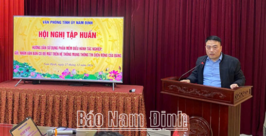 | Đồng chí Chu Minh Hải, Trưởng phòng Cơ yếu - CNTT, Văn phòng Tỉnh ủy triển khai các nội dung tập huấn. |