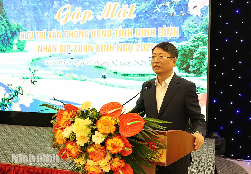 Thay mặt Câu lạc bộ Hưu trí Văn phòng UBND tỉnh, đồng chí Đinh Quốc Trị bày tỏ niềm tin tưởng vững chắc với đà phát triển mạnh mẽ hiện nay, tỉnh Ninh Bình sẽ tiếp tục đoàn kết, sáng tạo và giành được nhiều thắng lợi rực rỡ hơn nữa trong năm mới Bính Ngọ 2026.