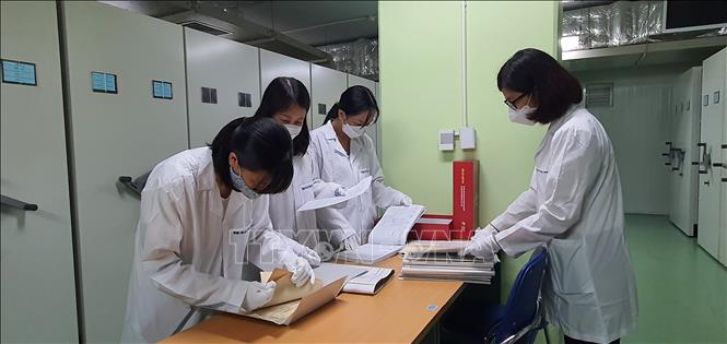 “Tài liệu chủ yếu bằng giấy dó và giấy Pelure, chất liệu kém, nên để kéo dài tuổi thọ của tài liệu, trước khi đưa vào kho, chúng tôi tiến hành khử trùng toàn bộ để chống mối mọt và nếu nhiễm axit, chúng tôi khử axit ngay lập tức để chữ và nét mực không bị bay. Phải thường xuyên vệ sinh tài liệu, hàng năm phải thống kê tình trạng tài liệu, nếu tình trạng vật lý kém thì tiến hành tu bổ để kéo dài tuổi thọ tài liệu. Chúng tôi cũng ưu tiên số hóa những tài liệu này để độc giả khai thác trực tiếp trên phần mềm quản lý tài liệu lưu trữ, tránh tiếp xúc với tài liệu dẫn đến giảm tuổi thọ của tài liệu”, ông Cương nói.