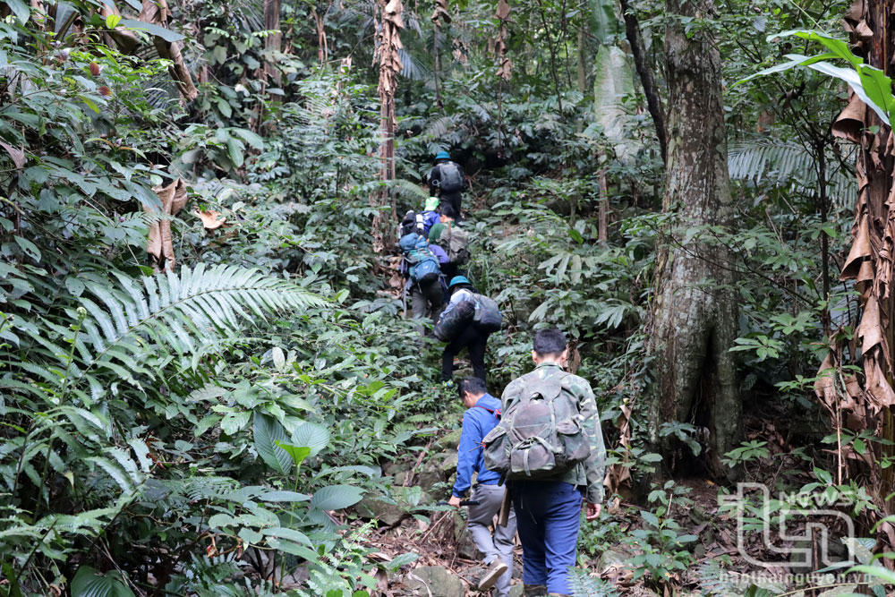 Vượt qua hết thảy mọi khó khăn, gần 4 giờ chiều, tất cả thành viên trong đoàn lên được khu vực đỉnh núi. Anh Trương Thủy Luân sử dụng máy định vị GPS và xác định khu vực này gần đến nơi xuất hiện cây chè cổ. Cả đoàn đều tập trung tìm kiếm cây chè. Đang đi, bỗng anh Luân nhìn thấy một cây giống cây chè nên vội vàng vạch lá, băng rừng tiến tới.