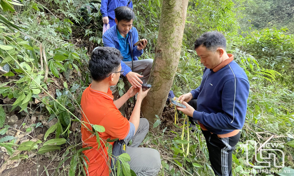 | Nhà khoa học và chuyên gia chè định vị GPS cây chè cổ. |
