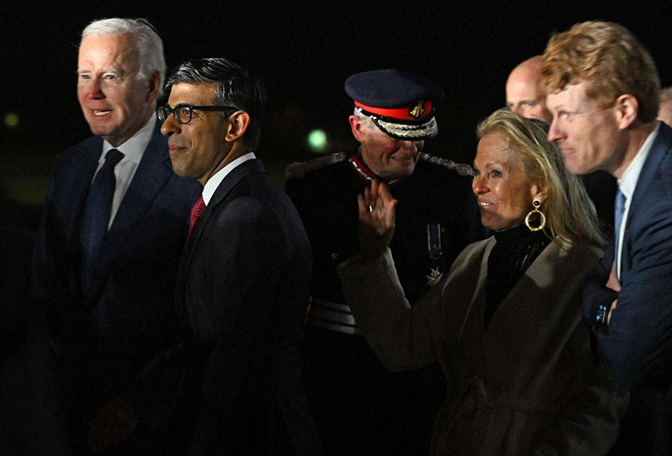 | Thủ tướng Anh Rishi Sunak đã đích thân đến sân bay để chào đón Tổng thống Mỹ Joe Biden.