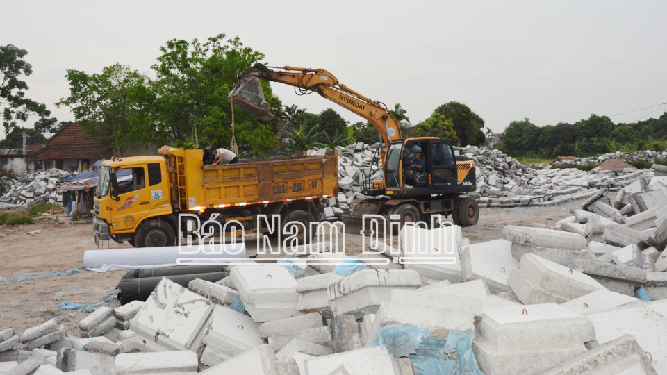 | Vận chuyển các cấu kiện bê tông phục vụ thi công xây dựng các tuyến đê trên địa bàn xã Nam Phong (thành phố Nam Định). |