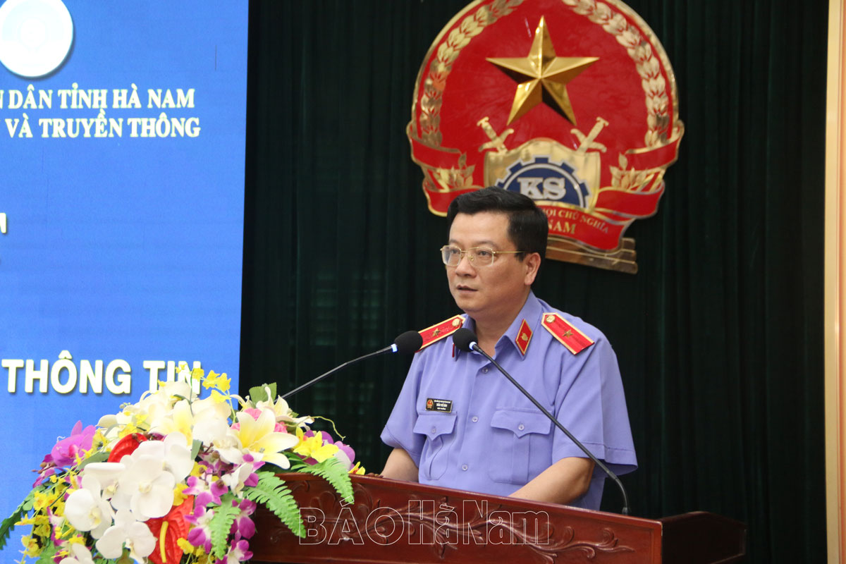 Đồng chí Trần Thế Kính, Tỉnh ủy viên, Viện trưởng Viện KSND tỉnh phát biểu tại hội nghị.