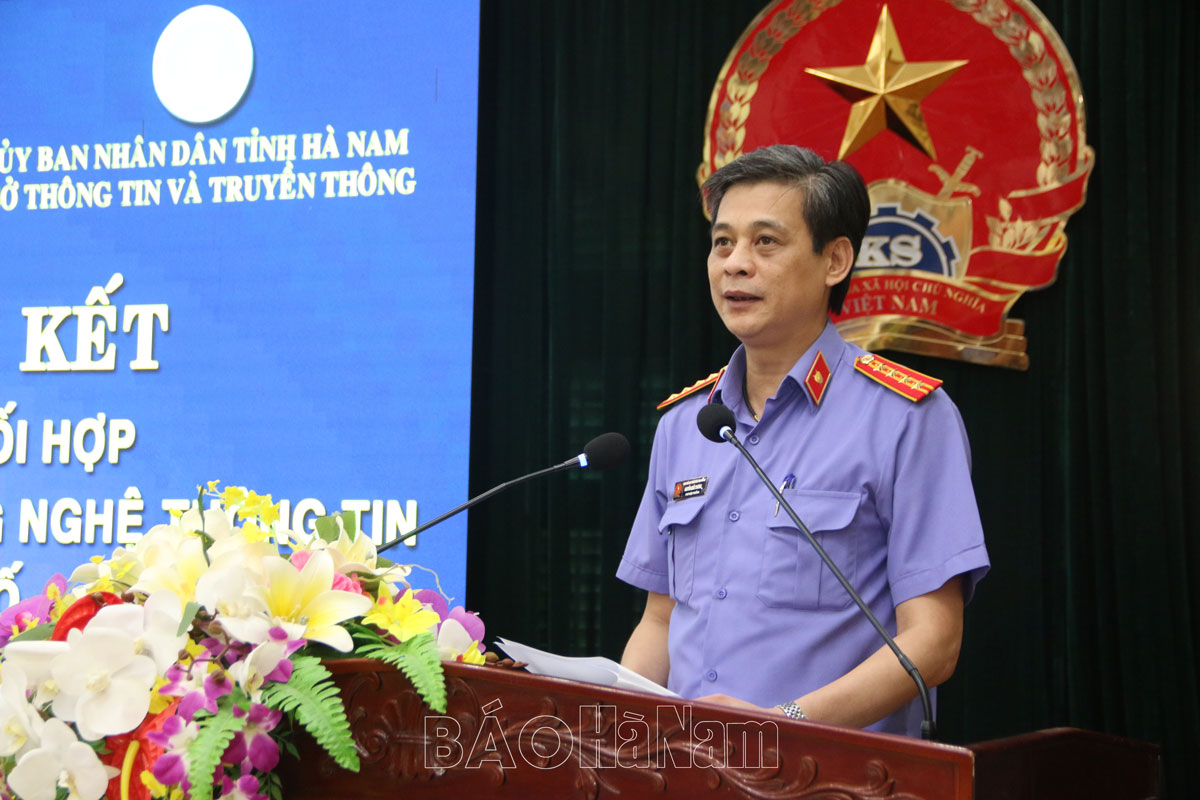 Đại diện lãnh đạo Viện KSND tỉnh thông qua chương trình phối hợp về đẩy mạnh CNTT, chuyển đổi số giữa hai đơn vị.