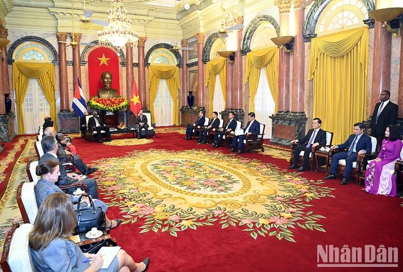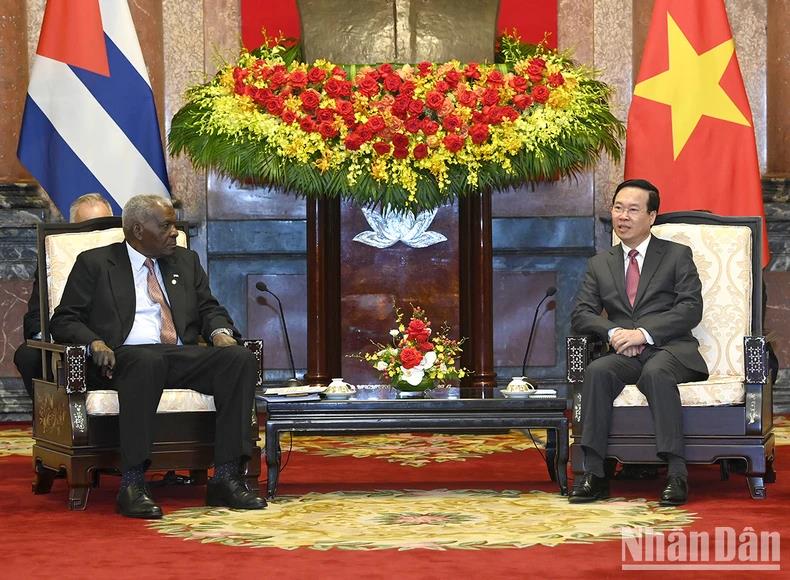 Nêu rõ, dù trong bối cảnh khó khăn vừa qua, Cuba đã nỗ lực để đạt nhiều kết quả tích cực, Chủ tịch nước Võ Văn Thưởng chúc mừng Cuba đã tổ chức thành công Hội nghị Thượng đỉnh Nhóm G77 và Trung Quốc với Tuyên bố chung Havana, qua đó thể hiện sự đóng góp tích cực vào các sáng kiến của Cuba đối với các vấn đề chung toàn cầu và tiếp tục nâng cao vị thế của Cuba trên trường quốc tế.