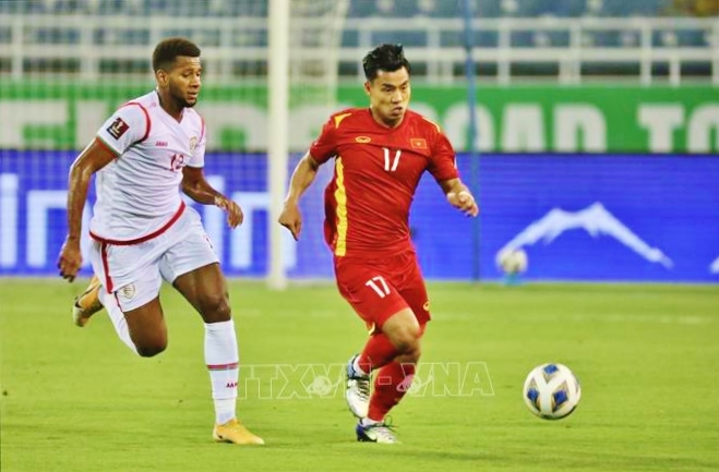 Kết thúc hiệp 1, tuyển Việt Nam có được thế trận cân bằng với tuyển Oman. Ảnh: TTXVN