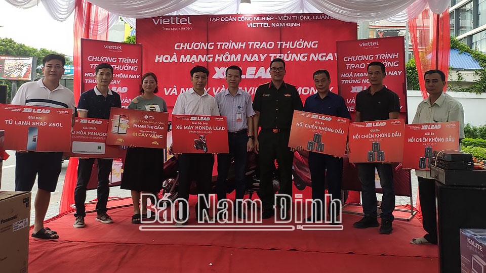 Với mạng lưới dịch vụ rộng khắp, từ khi gia nhập thị trường viễn thông đến nay, Viettel đã phục vụ cho hàng triệu khách hàng trên toàn quốc và trên 1,2 triệu khách hàng trên địa bàn tỉnh. Nhằm tri ân những đóng góp của khách hàng đã tin tưởng đồng hành cùng Viettel trong suốt thời gian qua, Viettel Nam Định đã tổ chức chương trình quay số trúng thưởng “Hòa mạng hôm nay – Trúng ngay xe LEAD” dành cho khách hàng thuê bao FTTH đang hoạt động chuyển sang gói MESH (supernet) có số liên hệ trên hợp đồng số Viettel; thuê bao FTTH hòa mạng mới các gói TB FTTH, TB FTTH supernet, TB Combo FTTH- Truyền hình. Tất cả các thuê bao này đều phải đang hoạt động 2 chiều và có thông báo cước tại Nam Định. Chương trình bắt đầu từ ngày 1-6 đến hết 31-7-2023.