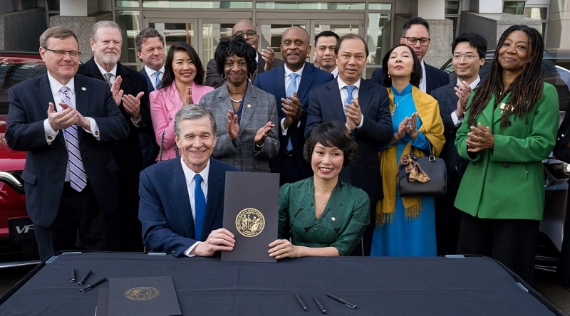 Ngày 29/3, VinFast cho biết đã ký một thỏa thuận sơ bộ về việc rót khoản đầu tư ban đầu trị giá 2 tỷ USD để xây dựng một nhà máy sản xuất xe điện và pin cho xe điện ở bang Bắc Carolina của Mỹ.