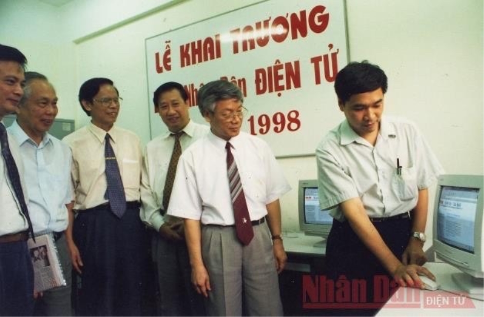 Tôi còn nhớ mãi, đầu năm 1997, theo quyết định của Bộ Chính trị cho phép Báo Nhân Dân tăng từ 4 trang lên 8 trang, đồng chí luôn theo dõi, cổ vũ, biểu dương những cố gắng dù nhỏ của tập thể báo Đảng. Đến cuối năm 1997, trên cương vị là Ủy viên Bộ Chính trị, phụ trách công tác tư tưởng, văn hóa, khoa giáo của Đảng, đồng chí Nguyễn Phú Trọng đã có nhiều buổi làm việc với tập thể Ban Biên tập, gợi mở cách thức cải tiến, đổi mới, nâng cao chất lượng Báo hằng ngày cũng như Báo Nhân Dân cuối tuần, Nhân Dân hằng tháng, Nhân Dân điện tử; đồng thời cho phép bổ sung, kiện toàn nhân sự Ban biên tập. Ngày 21/6/1998, đồng chí Nguyễn Phú Trọng thay mặt Đảng, Nhà nước đã trực tiếp bấm nút hòa mạng internet báo điện tử tiếng Việt.