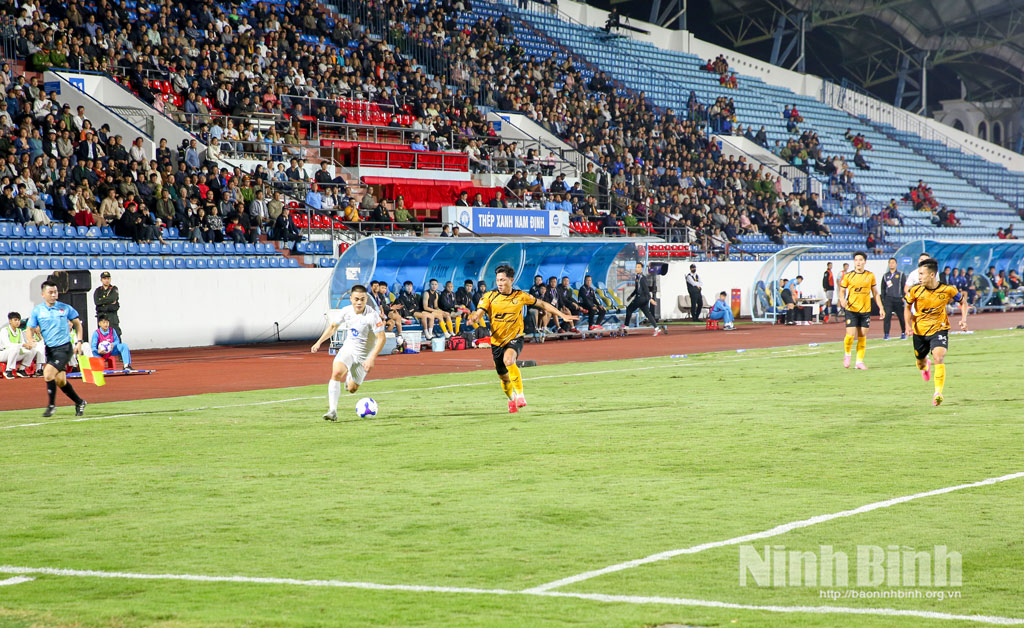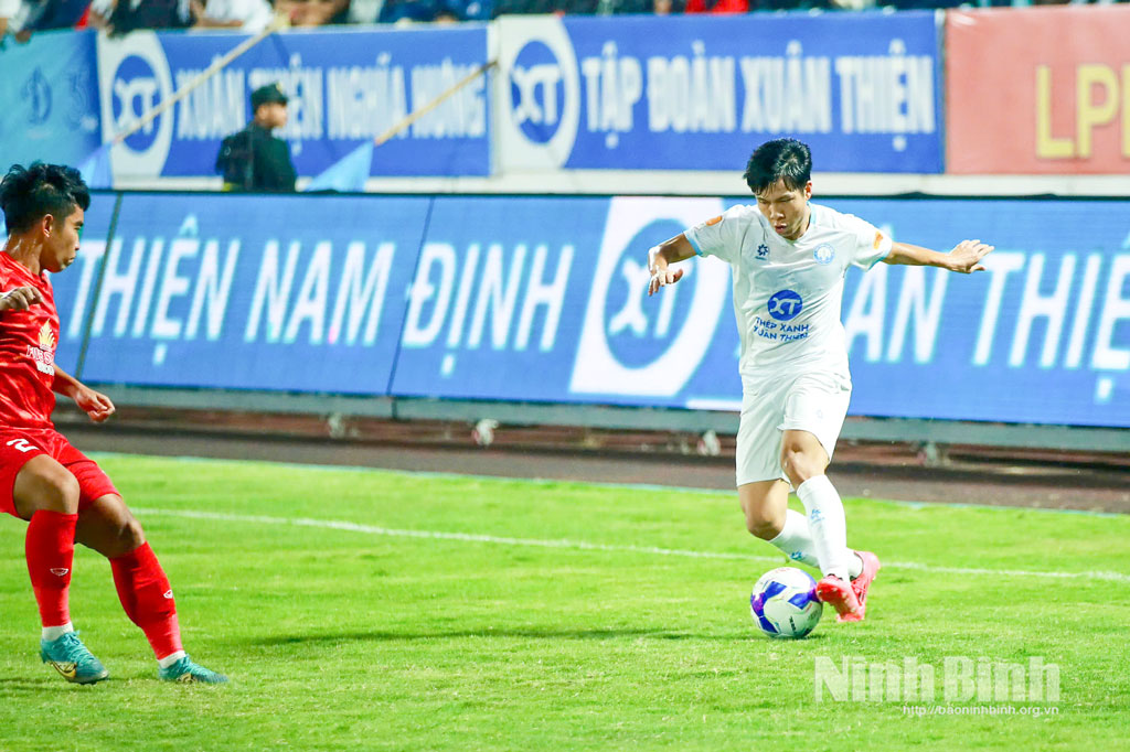 Một điểm dễ nhận thấy là các cầu thủ CLB Thép Xanh Nam Định chơi chủ động hơn. Thế trận tấn công dọc hai biên được triển khai tích cực, hiệu quả. Các cầu thủ chạy cánh thường xuyên dâng cao để tấn công, tạo sức ép lên hàng phòng ngự đối phương. Bóng được đưa nhanh vào khu vực cấm địa, nơi tiền đạo Nguyễn Xuân Son luôn sẵn sàng tranh chấp, tì đè để làm tường và kiến tạo cho đồng đội ghi bàn.