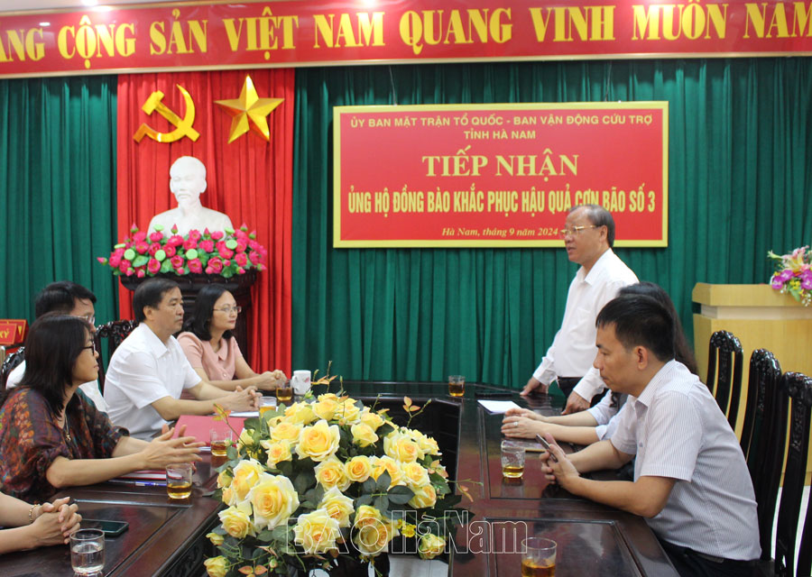 Ngày 18/9, tại Uỷ ban Mặt trận Tổ quốc tỉnh, đại diện lãnh đạo VNPT Hà Nam đã trao kinh phí hỗ trợ đồng bào nhân dân vùng lũ khắc phục thiệt hại do bão số 3 gây ra. Dự buổi trao kinh phí hỗ trợ nhân dân vùng lũ khắc phục hậu quả cơn bão số 3 có đồng chí Trần Thị Ngân, Ủy viên Ban Thường vụ Tỉnh ủy, Chủ tịch Ủy ban MTTQ tỉnh; lãnh đạo VNPT Hà Nam.