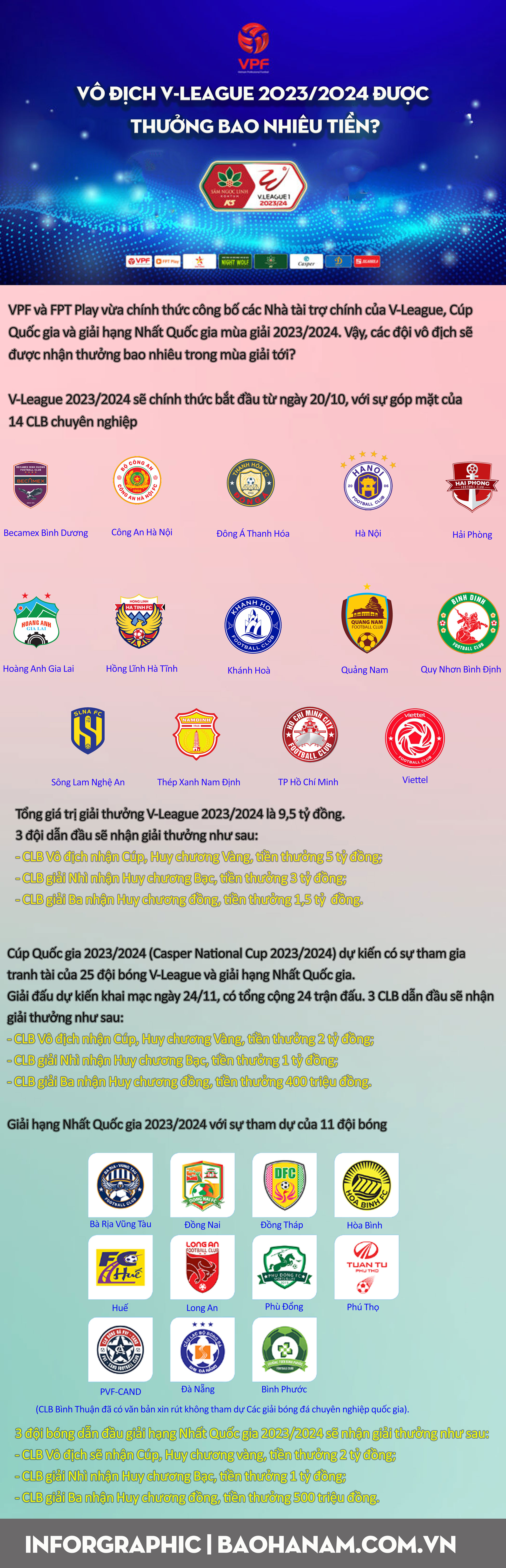 Vô địch V-League 2023/2024 được thưởng bao nhiêu tiền?