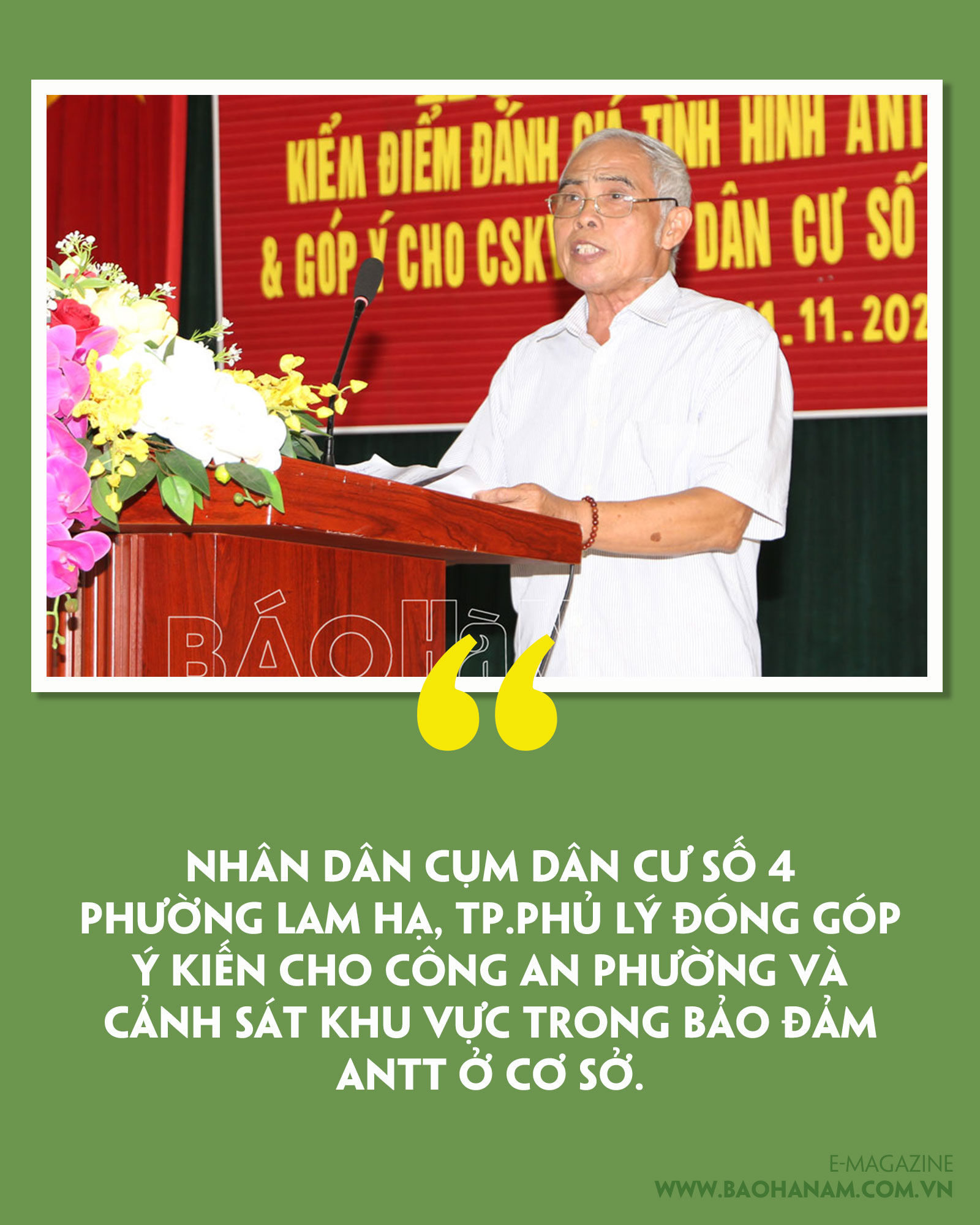Theo chân CBCS Công an xã Bình Nghĩa (Bình Lục) đến từng hộ dân trên địa bàn xã tuyên truyền, vận động, hướng dẫn người dân nâng cao tinh thần cảnh giác trước những phương thức, thủ đoạn hoạt động của các loại tội phạm trong những ngày giáp Tết, chúng tôi mới phần nào hiểu được sự gần gũi, gắn bó của các đồng chí đối với người dân địa phương theo đúng tinh thần bám sát địa bàn, “cùng ăn, cùng ở, cùng làm” với nhân dân. Trung tá Trần Xuân Bắc, Trưởng Công an xã Bình Nghĩa chia sẻ: “Là lực lượng gần dân, sát dân nhất, công việc của CBCS trong lực lượng công an xã những ngày giáp Tết lại càng đòi hỏi sự tập trung cao, song anh chị em luôn lấy niềm vui, hạnh phúc của nhân dân làm mục tiêu để thực hiện nhiệm vụ”.