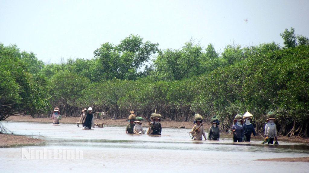 Không chỉ là nơi dành riêng cho giới khoa học, Xuân Thủy còn là “vườn của người dân”. Cư dân các xã vùng đệm như: Giao Thiện, Giao An, Giao Lạc cũ nay là xã Giao Minh (nơi mặt trời mọc…) bao đời gắn bó với đất rừng, sông nước. Họ cùng cán bộ Vườn chung tay bảo vệ rừng, khai thác bền vững để mưu sinh. Ông Ngô Đức Đang, người dân xã Giao Minh, có hơn 30 năm nuôi cua, tôm, cá trong khu ngập mặn, kể: “Nhờ nước sạch, nguồn thức ăn tự nhiên dồi dào, phong phú nên tôm, cua ở đây thịt chắc, thơm. Mình vừa có thu nhập, vừa giữ được môi trường”.