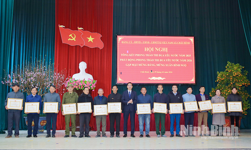 Sáng 9/2, UBND xã Chất Bình tổ chức tổng kết phong trào thi đua yêu nước năm 2025 và phát động phong trào thi đua năm 2026. Dự hội nghị có lãnh đạo Đảng ủy, HĐND, UBND, Ủy ban MTTQ Việt Nam xã, các tổ chức chính trị - xã hội; đại biểu nguyên lãnh đạo các xã (trước sáp nhập).